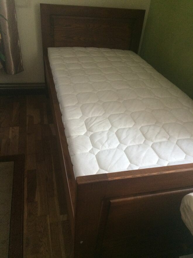 Sprzedam łóżko jesionowe 200/100 mocne.W komplecie stelaż elastyczny,materac bardzo wygodny Primator Bio Ex Royal H2,ochraniacz pod materac.Cena 400 zł.Odbiór osobisty.Sprawdź zainteresowanie tym ogłoszeniem